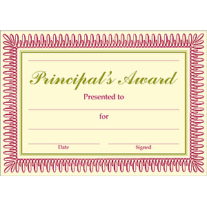Principal's Award classic certificate