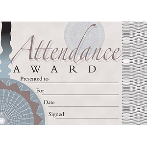 Attendance Award banknote style certificate