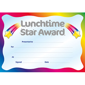 Metallic 'Lunchtime Star Award' certificate
