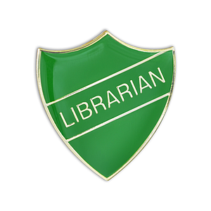 LIBRARIAN badge green and gold (pack of 5)