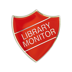 LIBRARY MONITOR badge red and gold (pack of 5)