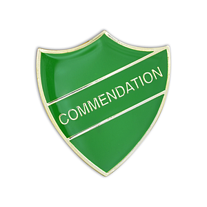 COMMENDATION green and gold badge (pack of 5)