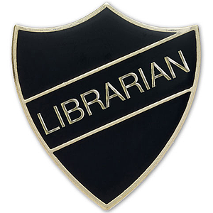 LIBRARIAN badge black and gold (pack of 5)